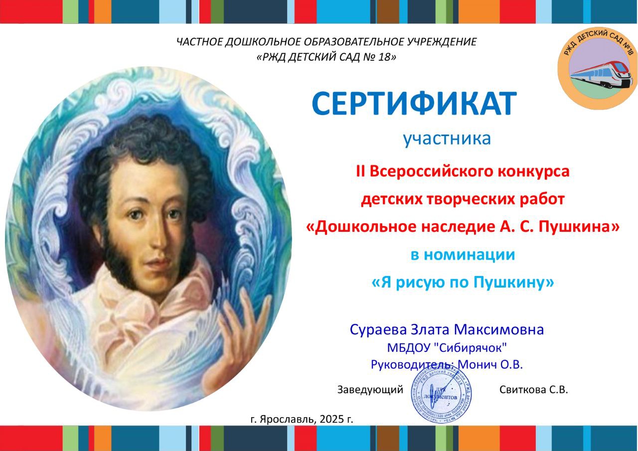 Сураева Злата "Золотая рыбка" II Всероссийский конкурс детских творческих работ "Дошкольное наследие А.С. Пушкина" в номинации "Я рисую по Пушкину"